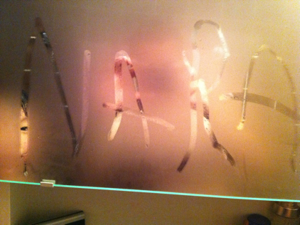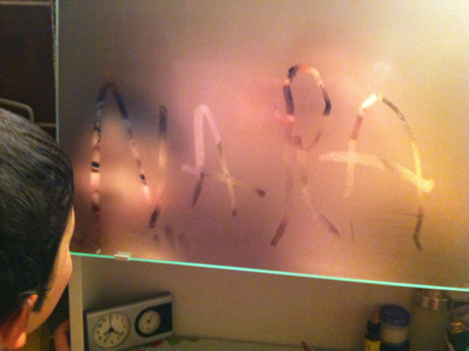 Posted on May 27, 2011January 3, 2017N A R A Nara schreibt zum erstenmal seinen Namen. An den Badezimmer Spiegel!