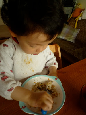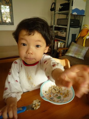 じいじ、ふーちゃん、食べてるよ! ich esse besser